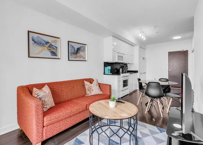 Situado en el barrio Centro de Toronto de Toronto, el Downtown Condo - Free Parking/Self Check-In Toronto se encuentra a 5 minutos a pie del Fuerte York y a 1 km del Coliseo Ricoh, cuya visita recomiendan los aficionados al deporte.